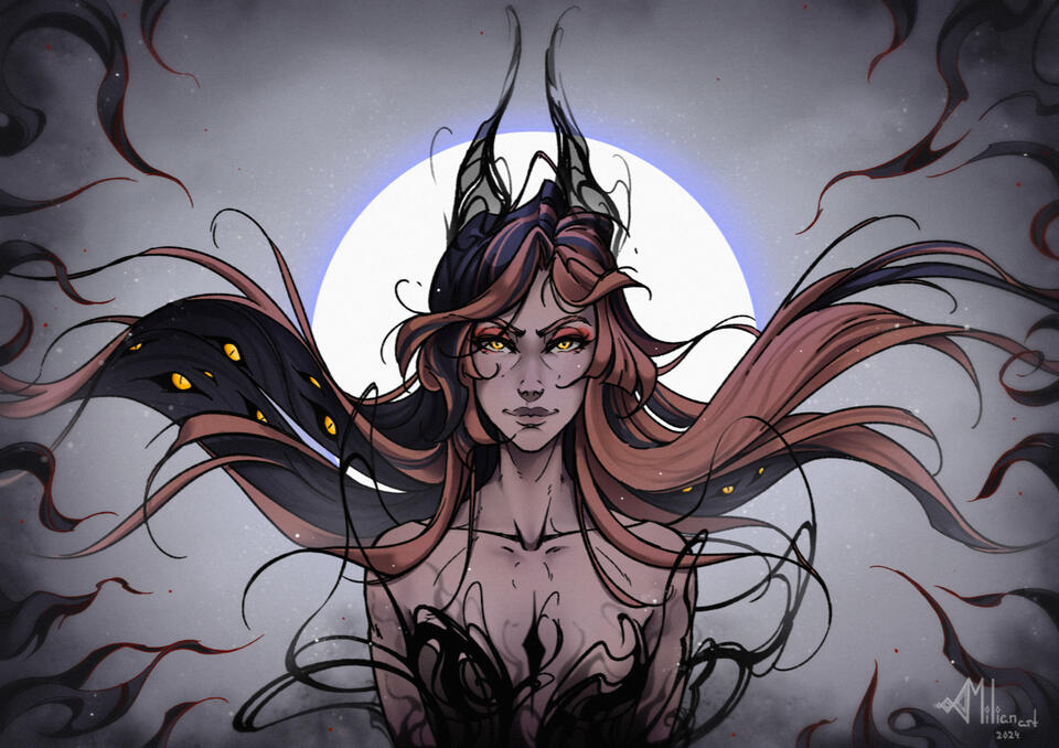 Цветное изображение персонажа с атмосферным освещением и простым символичным фоном⟡⟡⟡ПОРТРЕТ