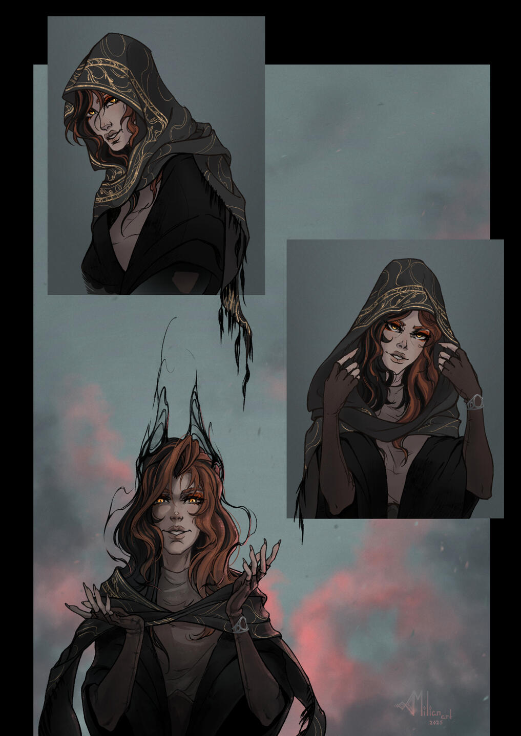Цветное изображение персонажа с атмосферным освещением и простым символичным фоном⟡⟡⟡ПОРТРЕТ